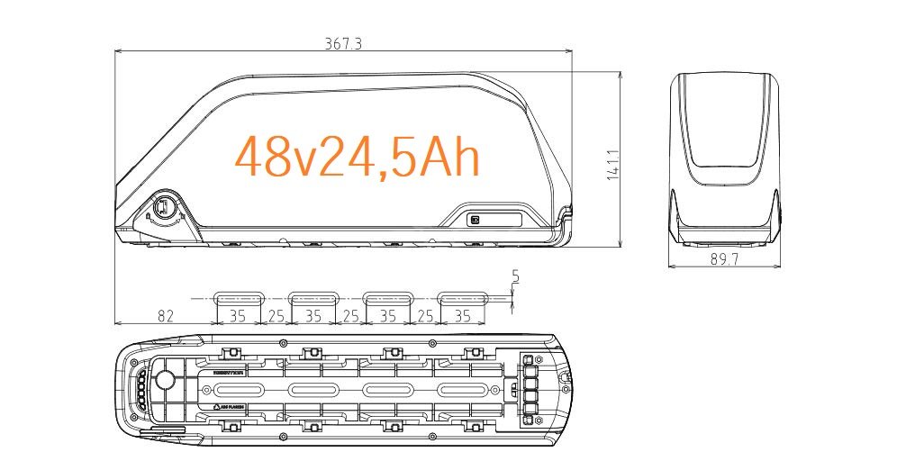 Запас ходу такого акумулятора на швидкості 25км/год становить в середньому 90-100км.