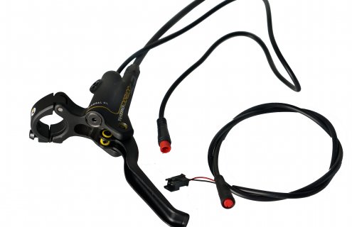 В тормозные ручки встроены выключатели. При нажатии ручки тормоза выключатель замыкает выходные контакты длдя активации рекуперации или просто отключения мотора.