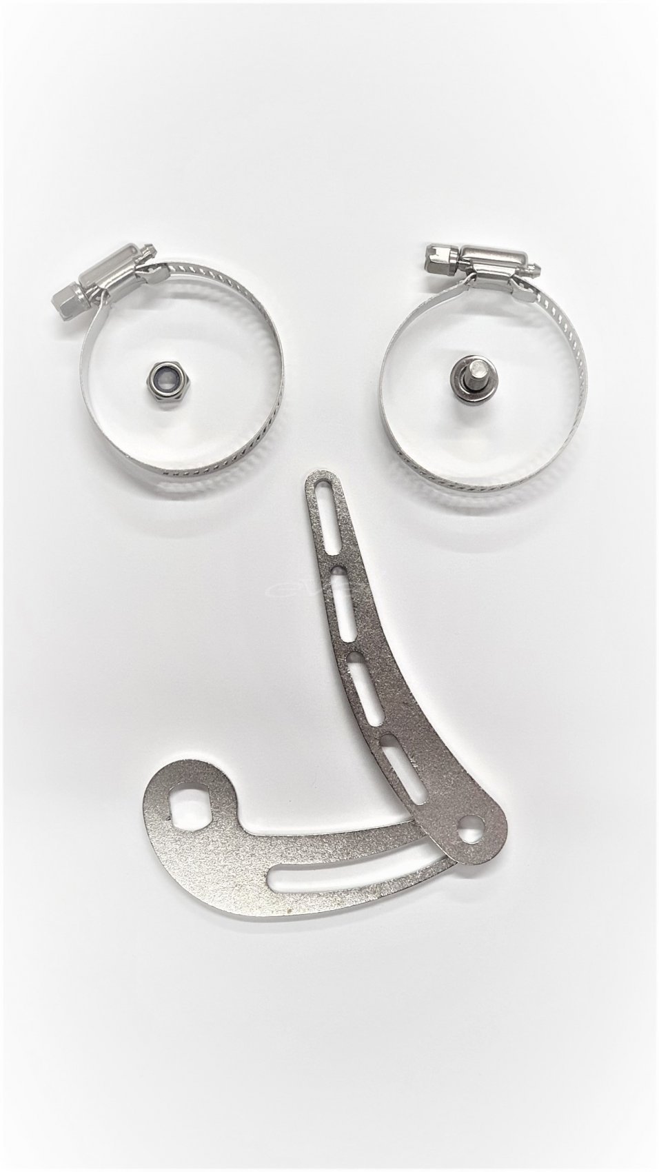 В комплект усилителя входит два рычага - один устанавливается на ось мотор-колеса, а второй - позволяет закрепить первый рычаг и вилку велосипеда с помощью хомутов.