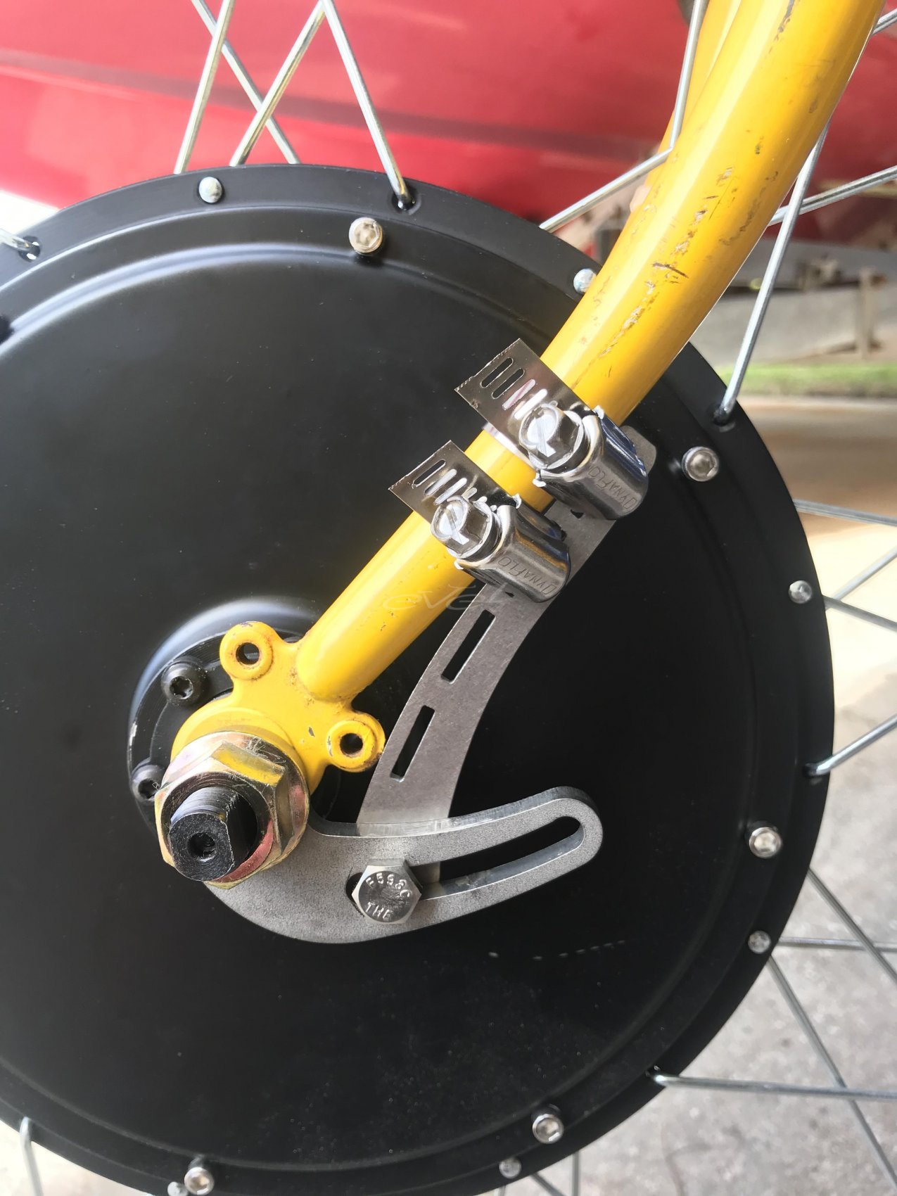 Пренебрегая усилением дропаутов можно получить печальный результат. Ось мотор-колеса является одним целым со статором. Поэтому фаска на оси — это упор статора, который передает реактивную крутящему моменту нагрузку на дропауты рамы. Если это соединение недостаточно крепкое — ось может попросту провернуться, а выходящий из нее провод перекрутится и порвется. Результат в лучшем случае — разогнутые дропауты (негодная рама), оборваные провода и сгоревшие датчики холла в мотор-колесе. В худшем — можно на ходу потерять колесо, получив травмы.