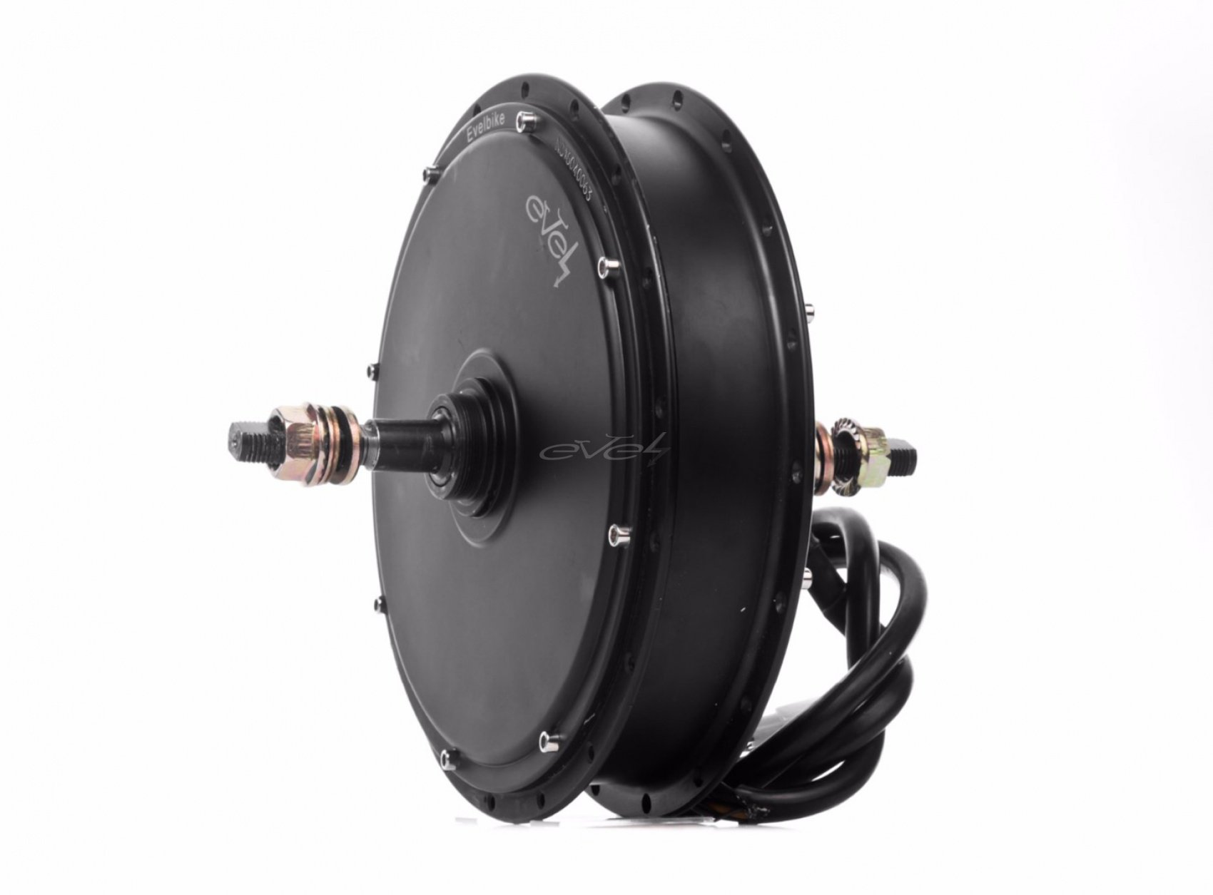 Мотор-колесо Evelbike GTS3000 - це найкраще співвідношення ваги та потужності для зарядженого електробайка зі швидкістю 80км/год і крутним моментом, що дає змогу їхати навіть угору сходами.