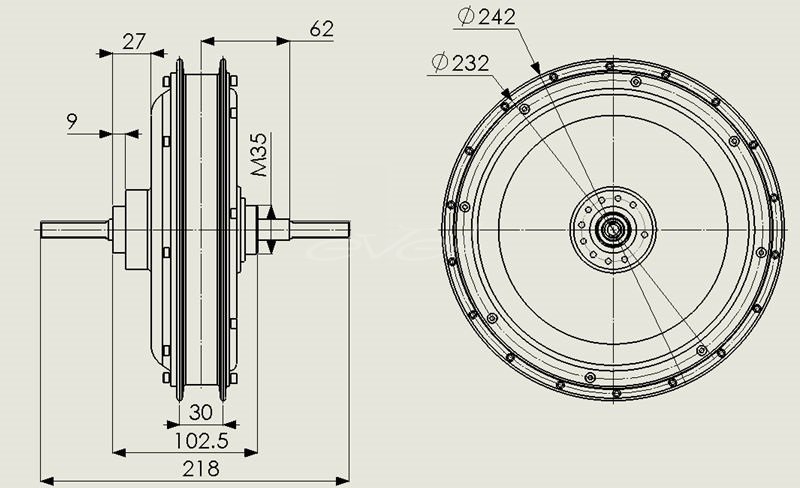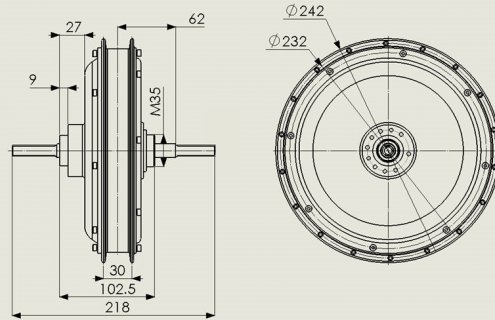 Це двигуни діаметром 205мм (з фланцями під спиці 245мм). Вони можуть відрізнятися за заявленою потужністю від 350Вт до 1000Вт.